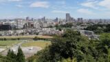 仙台市街地の高層ビルと自然の調和した風景